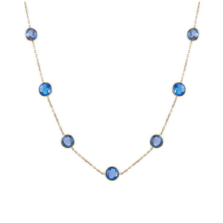 14KT Yellow Gold Round Blue Topaz Bezel Necklace