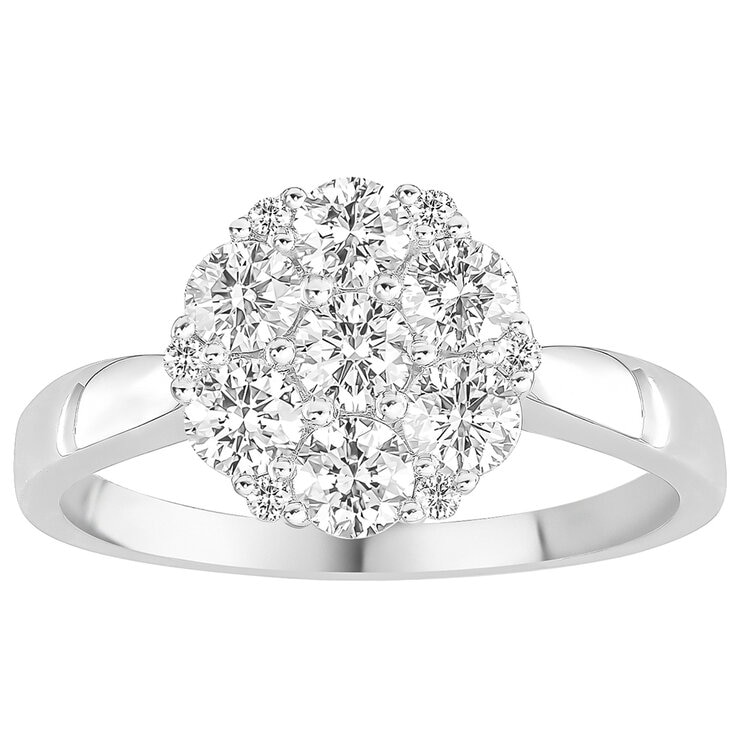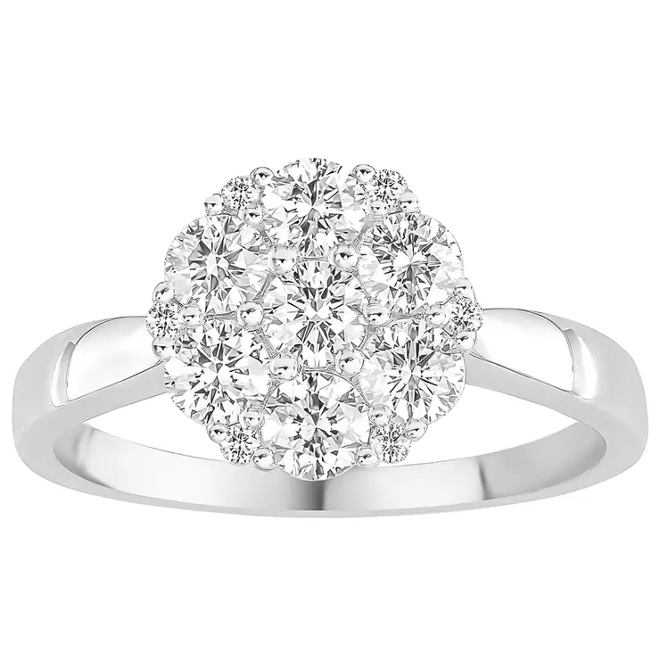18KT White Gold 0.95ctw Diamond Round Cluster Ring