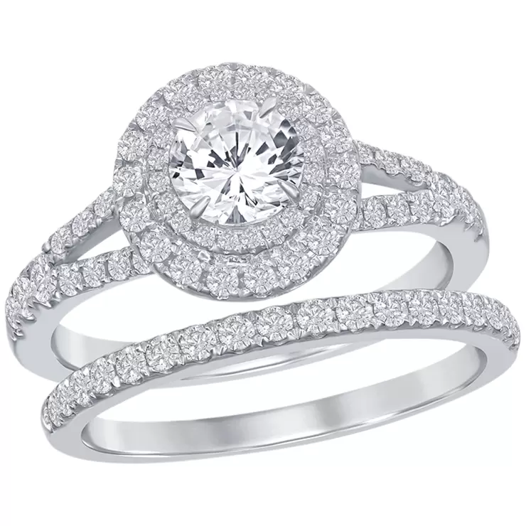 18KT White Gold 1.46ctw Diamond Double Halo Bridal Set