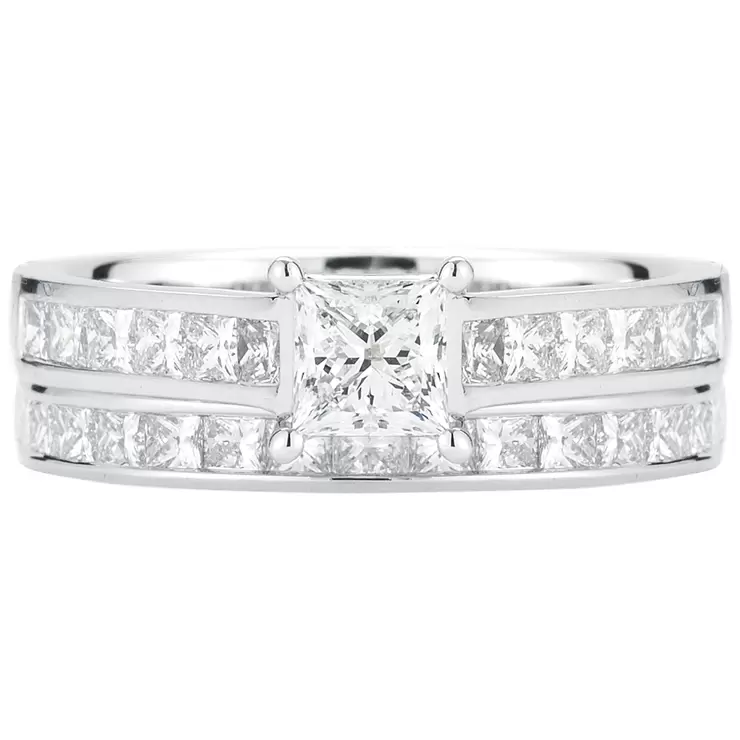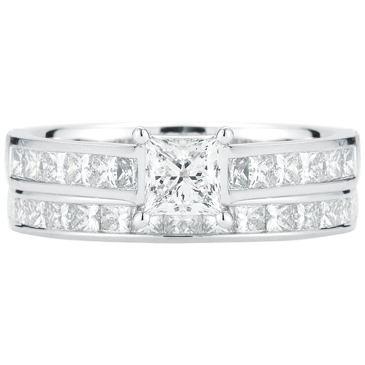 Platinum 2.05ctw diamond set with 0.70ctw princess cut centre.