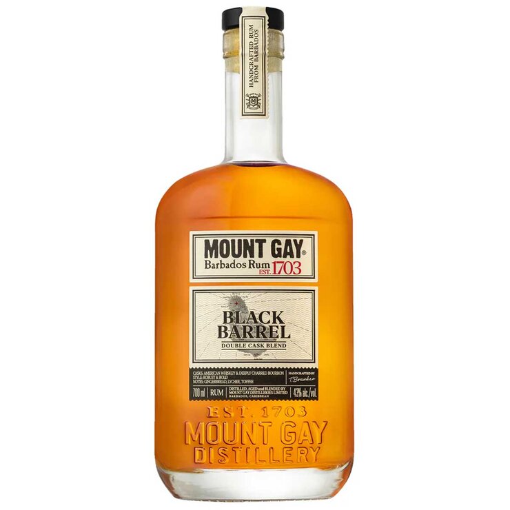 Mount Gay Black Barrel Rum is a unique small batch, handcrafted blend rum from Mount Gay. Like all Mount Gay Rums, double pot and single column distillates are aged separately in their own toasted oak, whiskey barrels until they reach maturity. Aromas of toasted wood, oaky vanilla, sweet caramel and peppery notes. Warm and medium bodied with notes of bold spice valanced with oaky vanilla and sweet caramel.| Alcohol Volume | 46% |