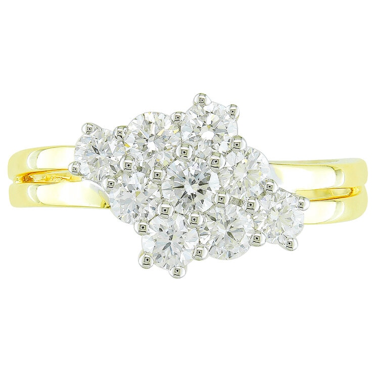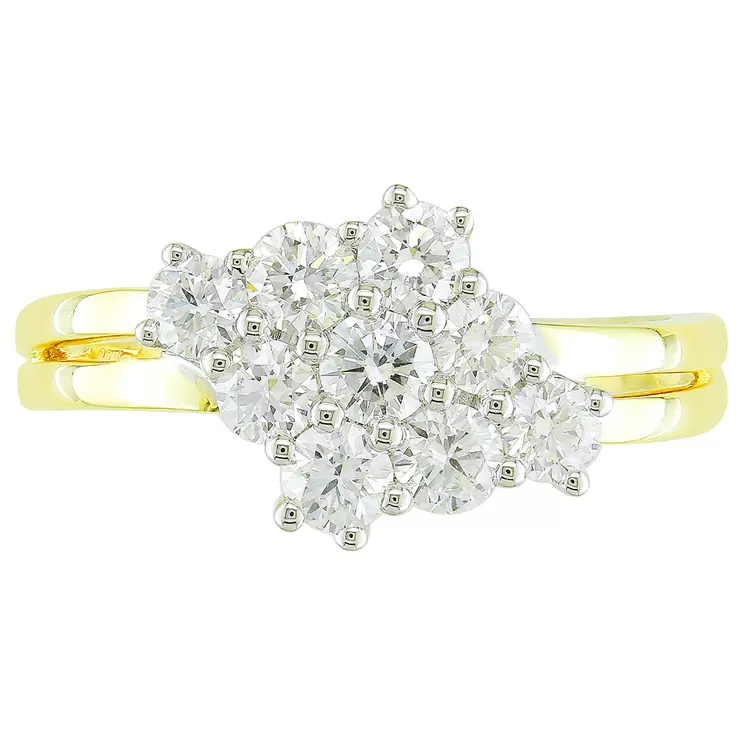 14KT Two Tone Gold 1.00ctw Round Diamond Cluster Ring