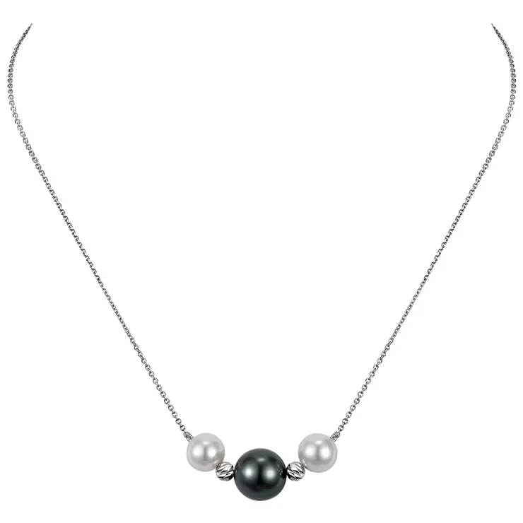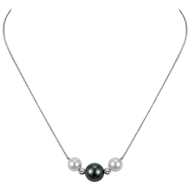 14KT White Gold 8-9mm Cultured Freshwater And 10-11mm Cultured Saltwater Tahitian Pearls And Diamond Cut Bead Necklace