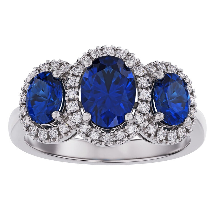18KT white gold 0.24ctw diamond and 3 oval sapphire ring.| Metal | 18KT White Gold |