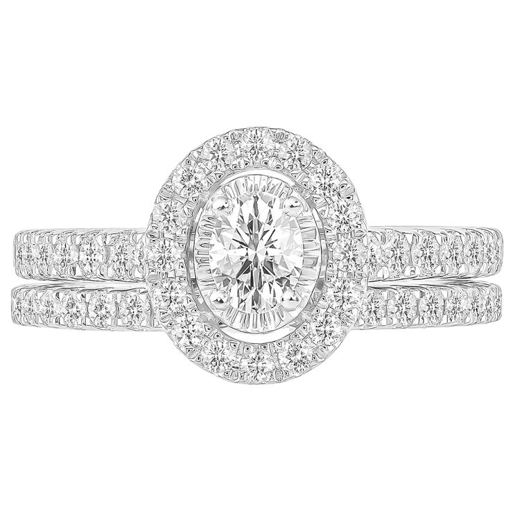 18KT White Gold 1.00ctw Round Diamond With Oval Centre Bridal Set