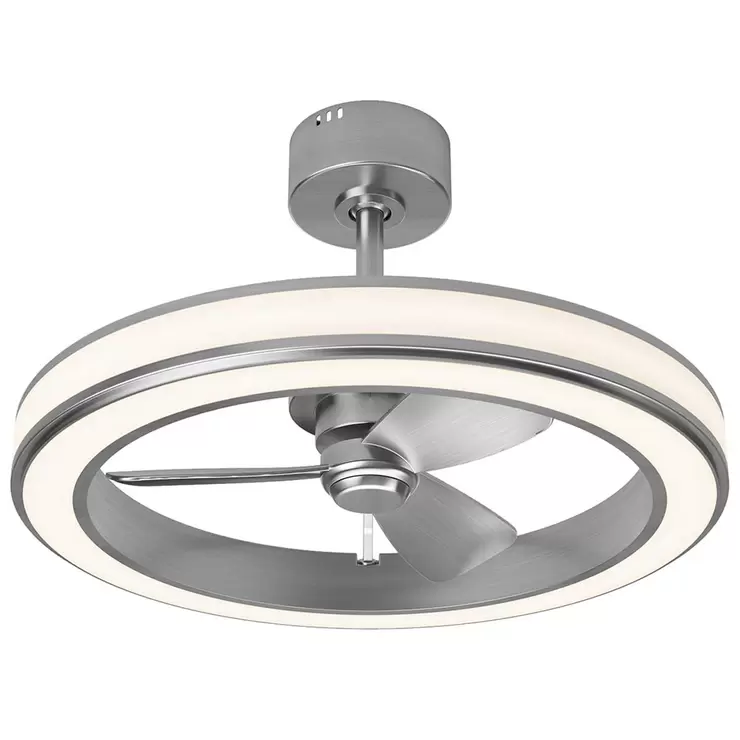 With its quiet motor and remote control, the Edwin LED fan appeals to those looking for lighting that's both functional and aesthetic. Its industrial design makes it the ultimate accessory for urban decor. Robust and sealed bearings offer peace and quiet, while reversible rotation allows for better ventilation.Thanks to its remote control, it's easy to adjust the 3 speeds and brightness. What's more, Edwin features an on/off timer for your convenience. Designed for maximum efficiency, Edwin requires no bulbs and is easy to install. It provides 50,000 hours of illumination.