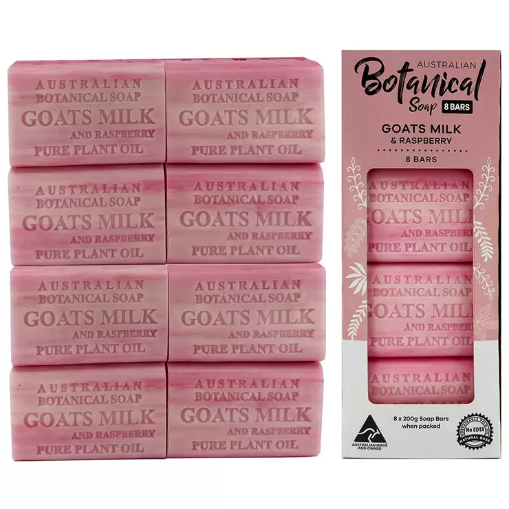 Australian Botanical Bar Soap 8 Pack Goats Milk And Raspberry