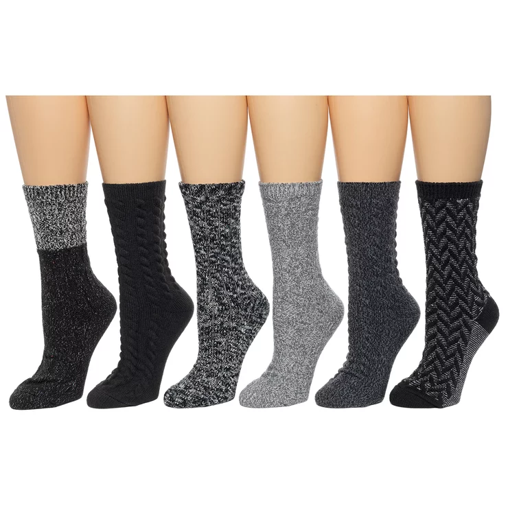 Women's Boot Socks 6 pack. Super soft hand feel, warm and cozy. Comfort welt and flat toe seam. Array of beautiful textures in wardrobing, easy to wear colours.This product features:
