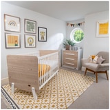 This Boori Natty bed has a modern design with round corners, angled feet and muted two tone colour palette. It can be converted into a toddler bed with two guarded sides using parts from the cot end panels. It has two base heights for easy access to newborns and a lower base level for when the baby is able to pull themselves up. Requirements for the mattress is 132 x 70 cm.