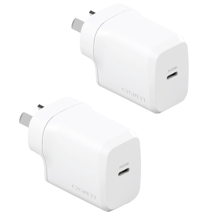 Cygnett Powerplus 25W USB-C Wall Charger Twin Pack White CY5173PDWCH