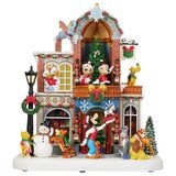 Mickey, Minnie and the gang are shopping till they drop at the Toy Shop. Lights and music make this a great Holiday centrepiece.This product features: