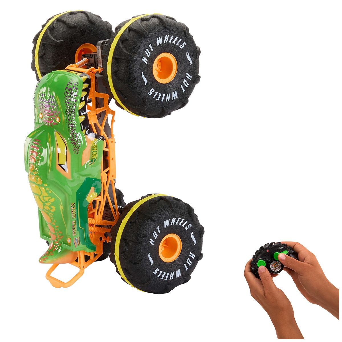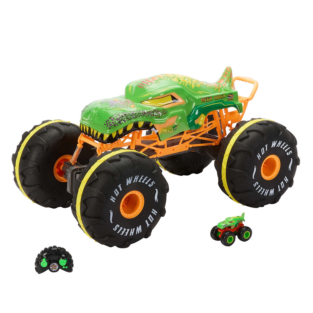 - Dominate the competition with the extra large Hot Wheels Monster Truck RC 1:6th Mega-Wrex!