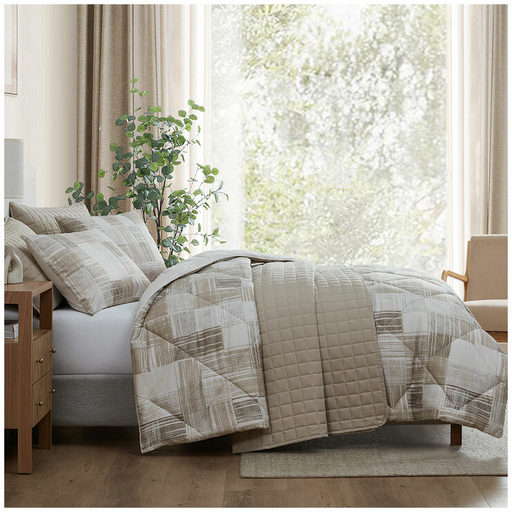 Jennifer Adams Comforter Set King 6 Piece Set Theo Plaid Latte