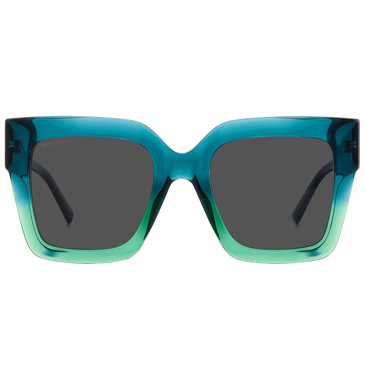 Jimmy Choo's Iconic Glitter eyewear collection draws on the charming allure of sparkling crystals, showcasing the brand's hallmark fusion of innovative craftsmanship and seductive styling. These acetate sunglasses flaunt a bold square silhouette. Detailed with logo lettering, the temples are hand embellished with a shimmering fabric insert for a subtle hint of glamour.Measurements