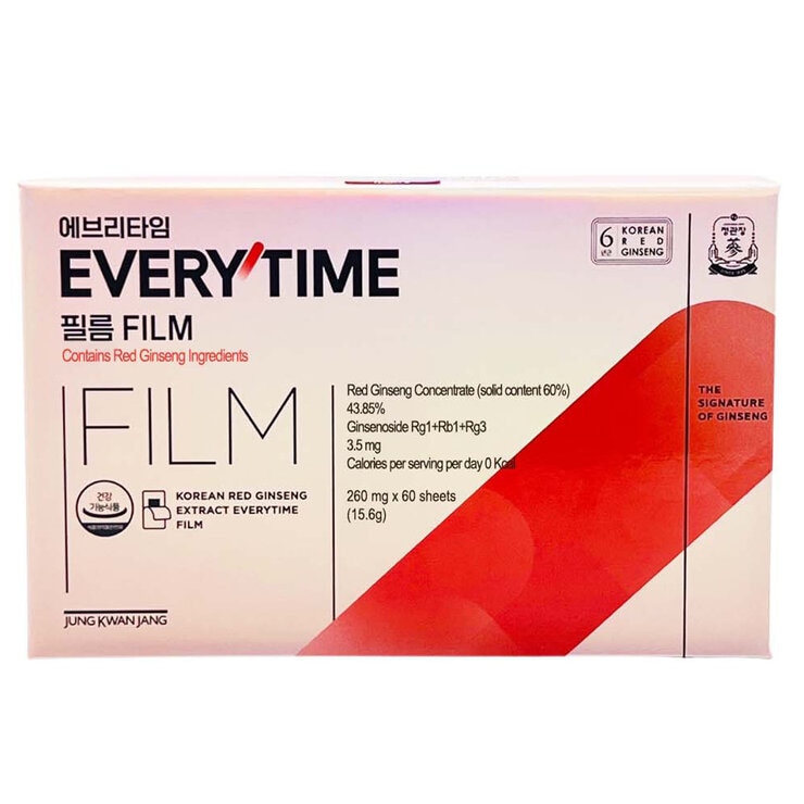 This product is a dietary supplement that may help boost immunity, reduce fatigue, improve memory and provide antioxidant support. A new and easy way to take red ginseng: This product is taken through an Oral Dissolving Film (ODF) that adheres to the oral mucosa. It is a product that condenses the functional ingredients of red ginseng with Jung Kwan Jang's unique technology into a thin film, making it easy to take care of your health with just one strip a day.