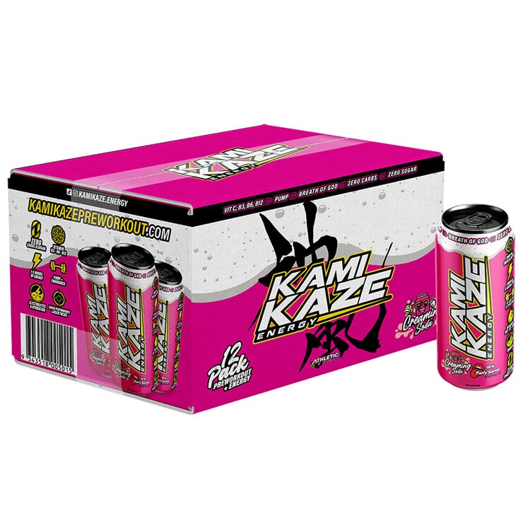 Kamikaze energy pre-workout in a can, full performance, no crash. Kamikaze is for the doers. Work hard, play hard, gym hard, while surrounding yourselves with the tools and people to live your best lives. Support for fierce focus, so keep crushing life with a Kamikaze in your hand.