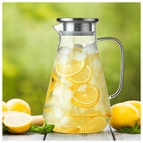 The glass pitcher is made by heat resistance borosilicate glass which is lead free, lightweight and durable. Its capacity is ideal for serving your family or guests. You can use it for water, iced tea, fruit infused juices, coffee, wine or any other cold or hot drink.This product features:
