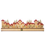 This wooden village advent calendar is perfect for the mantle, shelf, window sil, etc. To indicate days before the main event. The village houses are lit throughout in doorways & windows, as well as the countdown numbers. The wreath decoration is on a metal track to easily slide, showing the number of days until christmas. Made of durable plywood, this decoration / advent calendar will be put on display at the most exciting time every year.The product features:
