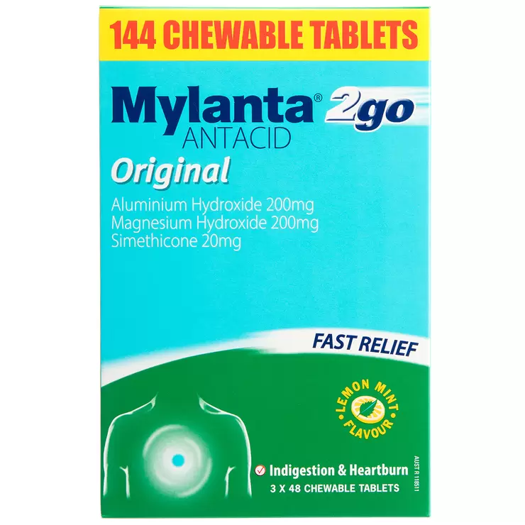 Mylanta 2Go Antacid Original provides fast relief from indigestion and heartburn with chewable lemon mint flavoured tablets. Mylanta 2Go Antacid Original provides fast relief from indigestion, heartburn, upset stomach, flatulence and wind pain.