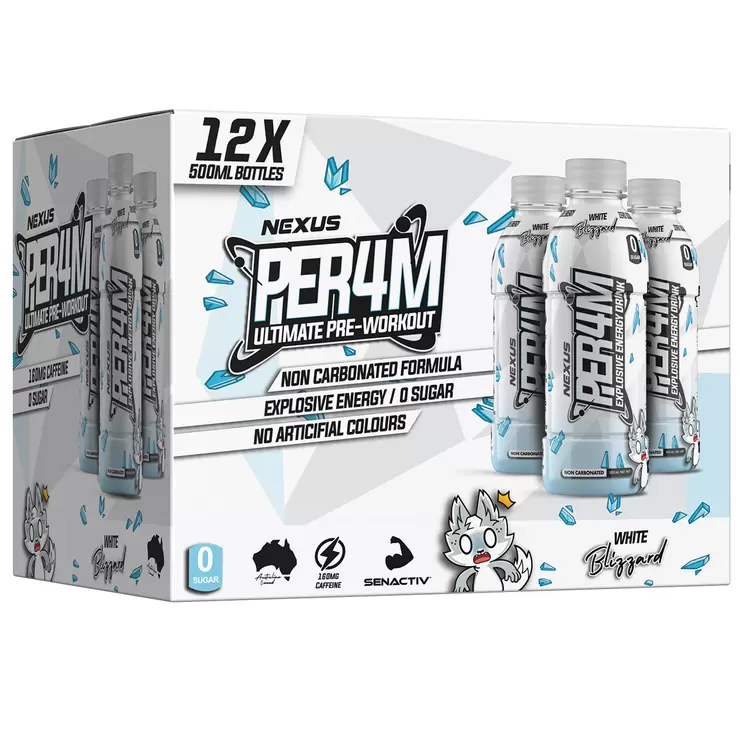 Nexus Per4m Pre-Workout Non Carbonated Drink 12 x 500ml White Blizard