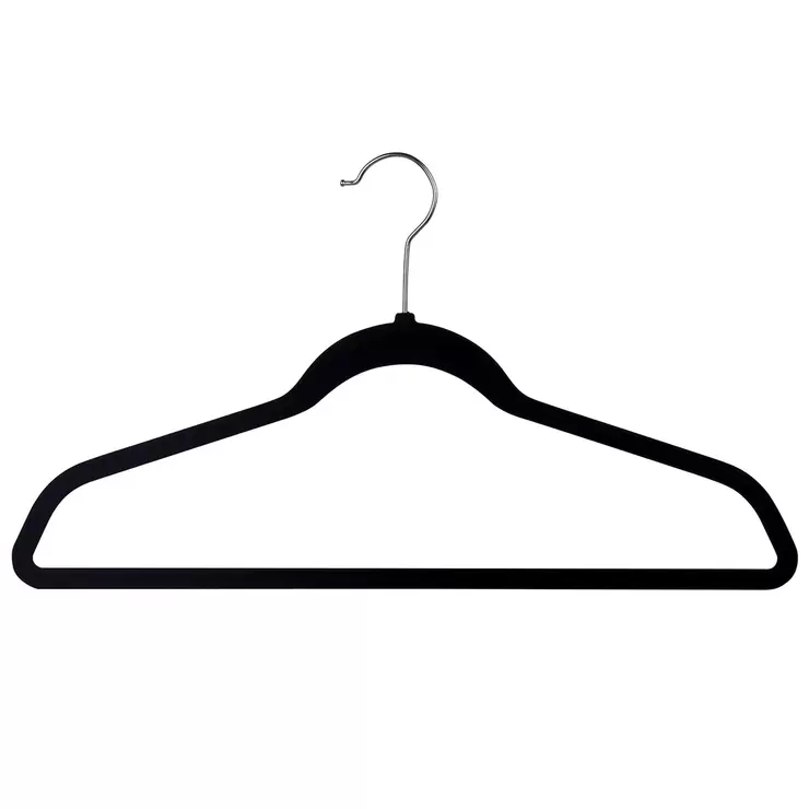 This pack of 50 non slip hangers feature an ultra thin design making them the perfect space saving solution for maximising your closet space. The flocked velvet like texture keeps clothes secure so items will not fall or slip off. The hangers are also designed to ensure the shape of clothing is preserved.This product features: