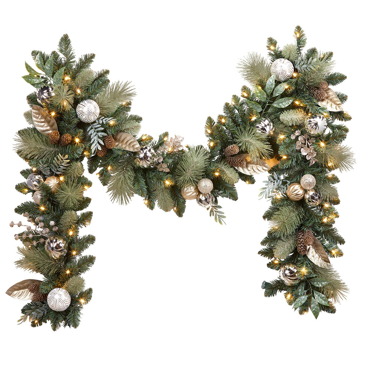 Take your holiday decor to the next level with this CGH Faux 2.74 metre Pre Lit Garland. The garland is beautifully decorated and pre lit with 90 warm white lights to bring holiday joy to your space. Crafted from the highest quality materials, this garland offers both durability and beauty, featuring hand selected decorations that capture the essence of the season. Perfect for mantles, banisters or entryways, this garland is ready to display, bringing holiday cheer and warmth to your home year after year.The product features: