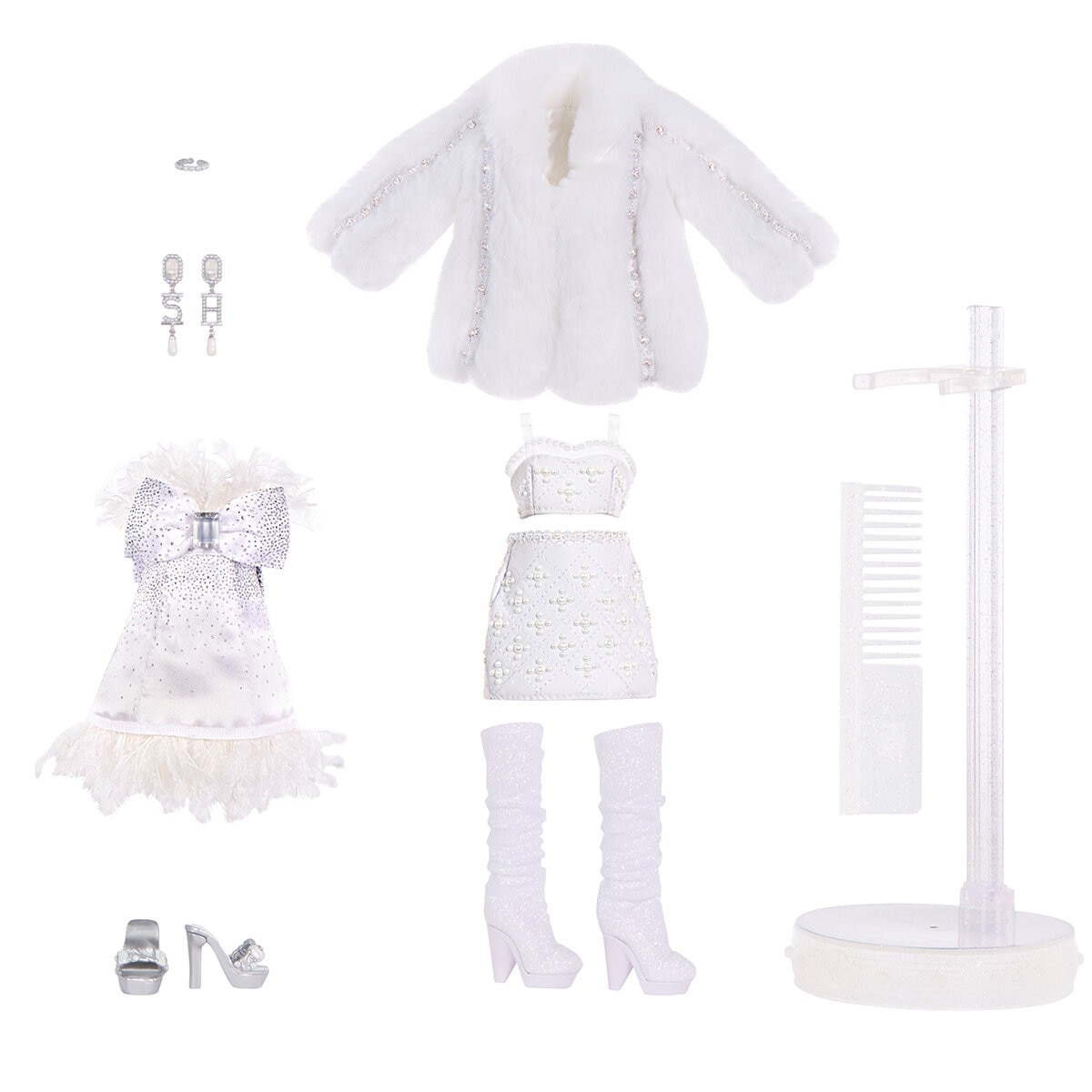 Fashion doll, two complete doll outfit, two pairs of doll shoes, doll accessories and doll stand.This playset will give kids endless joy and imaginative storytelling entertainment.
