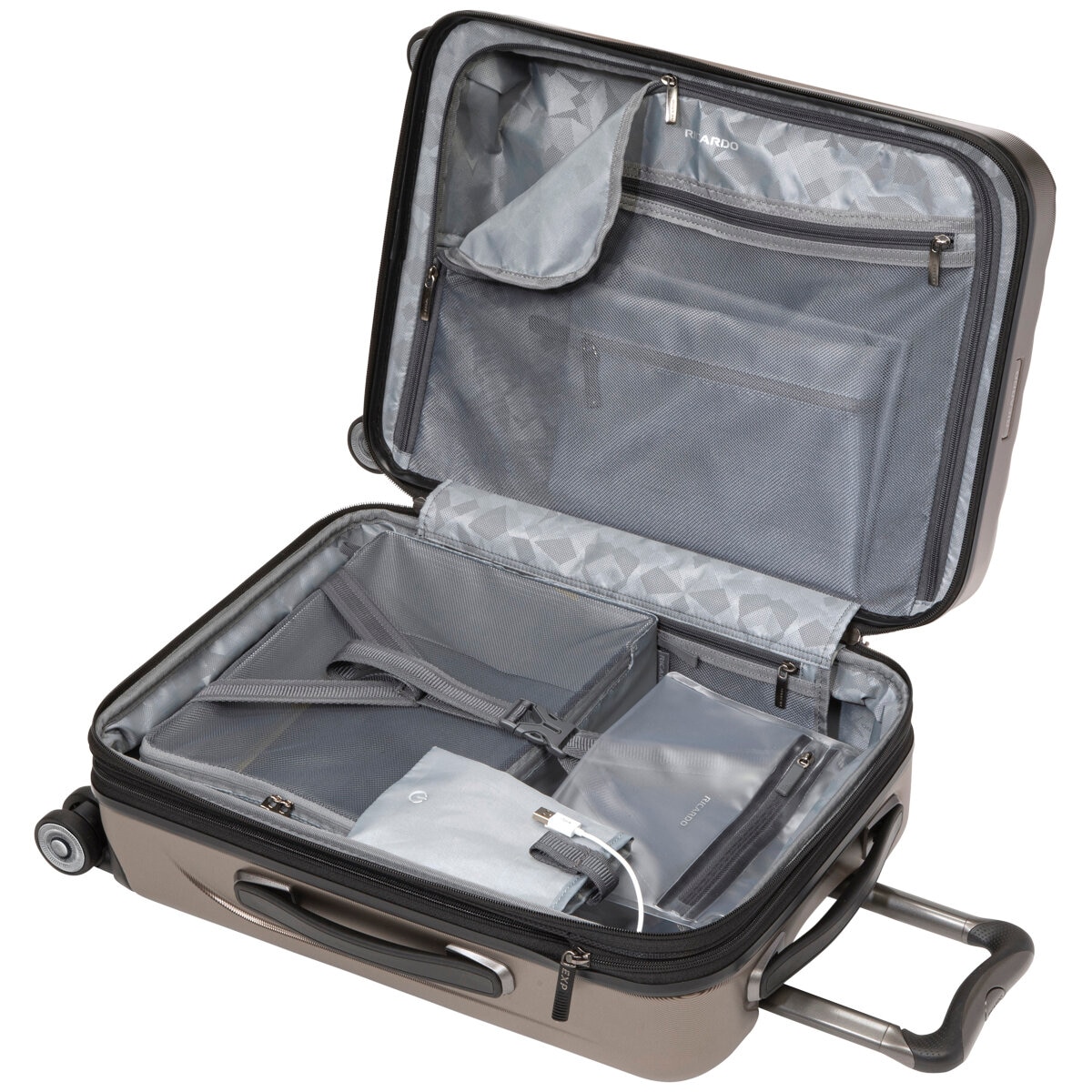 Pack better. Pack smart. The 100% polycarbonate Big Sur Carry On from Ricardo features complete organisation with an included packing cube*, water resistant travel pouch and laundry bag/garment separator. Perfect for business or pleasure, this premium case additionally offers tech-charging capability, a spacious packing capacity and Ricardo’s signature smooth and comfortable handling. Enjoy the luxury of choice when it comes to practical versatility while packing.