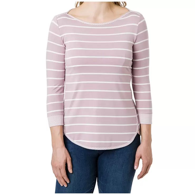 This Segments women's 3/4 sleeve top is soft and comfortable with a boat neck and contrasting stripe trim for a modern, tailored look. It also features a rounded hem, 3/4 sleeves, and it's pre-shrunk to minimise shrinkage.