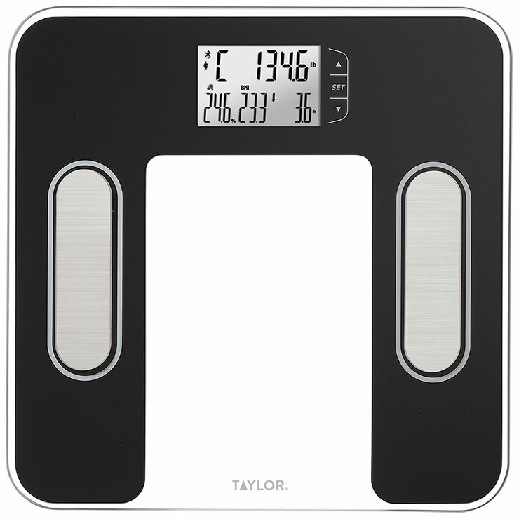 Take control of your wellness with the Taylor Smart Body Composition Scale with Precision Hub. This innovative scale provides more than just your weight, it delivers a body composition analysis to help you understand what’s behind every number.Equipped with sensors and seamless connectivity, the scale syncs with the Precision Hub App to display detailed insights, including estimated body fat %, estimated body water %, estimated muscle mass, BMI, BMR, and weight difference from your previous reading. The intuitive app allows you to view trends over time, set goals and monitor progress for multiple users, all in one convenient place.
